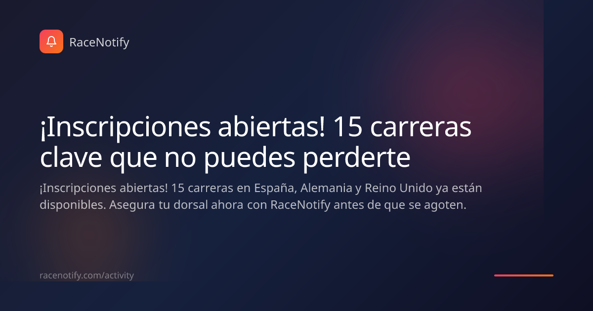 ¡El tiempo vuela! Esta semana ha sido frenética para el calendario deportivo con la apertura de inscripciones para 15 eventos destacados en toda Europa. Desde el asfalto rápido de Newcastle hasta los senderos técnicos de Galicia y Alemania, las plazas están volando. RaceNotify envió notificaciones en el momento exacto en que se habilitaron los formularios, y si no actúas rápido, podrías quedarte fuera de tu próximo gran objetivo. 🏃♂️