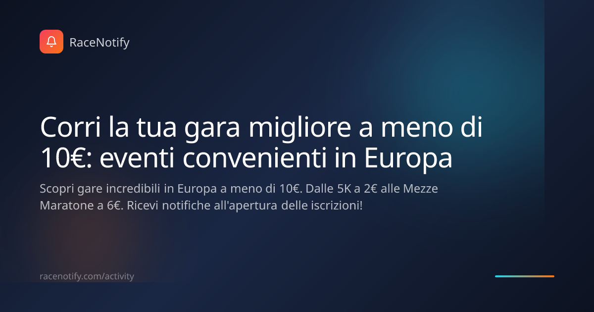 La passione per lo sport non dovrebbe dipendere dal tuo conto in banca. Crediamo che l'emozione di tagliare il traguardo debba essere alla portata di ogni atleta. In tutta Europa, ci sono eventi incredibili che dimostrano come le grandi esperienze siano accessibili a tutti, con iscrizioni che costano meno di una pizza. 🏃♂️